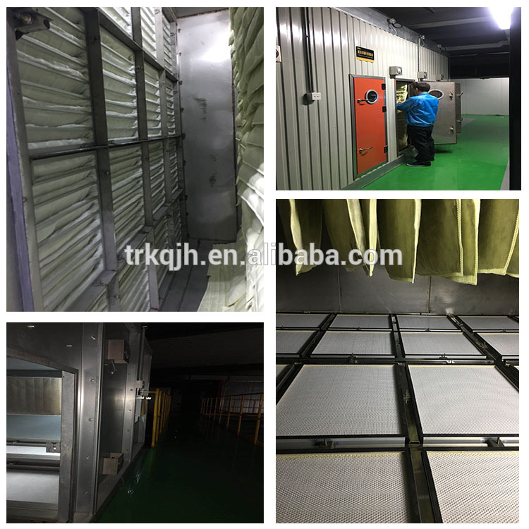 7.更换高效过滤器时,应把安装过滤器的四框和周边用湿的洁净抹布擦拭干净,并且要反复三次,擦拭后应立即安装高效过滤器。高效过滤器应在现场拆箱,并检查合格后,立即进行安装,以防止灰尘落进高效过滤器。