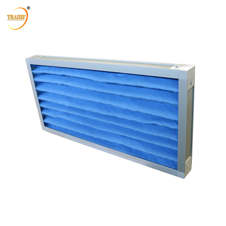特殊处理高强度坑纸外框、不生锈镀锌护网、滤料为优质耐用的初效空气过滤棉,过滤棉颜色有白色、黄色、绿色、蓝色四种。